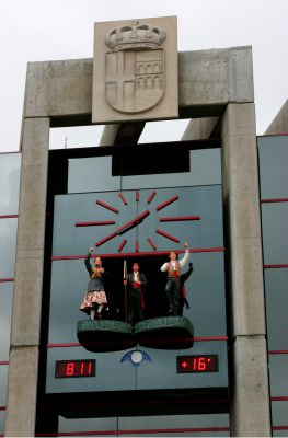 Parece que el estilo arquitectónico empleado hoy en día no es compatible con los automatas, esos personajes que se mueven o bailan al son de una melodía o campanadas del reloj, pero esta fotografía de un reloj actual con automatas, refleja que si puede aunarse el diseño con la tradición. Los personajes que aparecen en esta fachada moderna solo son visibles durante escasos minutos al día, en aquellas horas programadas para que aparezcan, pero la inmensa parte del día están ocultos tras las puertas y no alteran la estética arquitectónica del edificio. Nuestras ciudades y pueblos cambian su fisonomía paulatinamente y a veces pierden su personalidad por tendencias y modas que no siempre parecen mejorar su aspecto, ante tantos cambios los autómatas nos muestran durante unos minutos algunos aspectos del pasado, tradiciones, hechos históricos, modas, etc.., quizás para colaborar en que no olvidemos nuestra historia, nos haga ser humildes, reflexionar y evitar que cometamos errores que ya se cometieron anteriormente. Cada ciudad, cada pueblo, tiene una tradición en el tiempo que no se debe perder en el olvido y puede ser recordada por estos automatas, tradiciones que fueron creadas y mantenidas por nuestros antepasados y aunque ahora nos parezcan curiosas o extrañas, eran su presente.