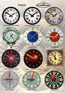 Fabricamos esferas de relojes en materiales tan diversos como el aluminio, acero, latón, cobre, metacrilato, cristal y en medidas desde 20cm hasta lo que usted precise (hemos fabricado esferas de hasta 14m de diámetro). Las numeraciones las podemos fabricar de cualquier modelo y en cualquier material: impresa, vinilo, latón, metacrilato. Aunque fabricamos tiradas en serie nuestra especialidad es llevar a cabo el diseño que usted escoja de nuestro catálogo o el que usted mismo realice para ello es suficiente que nos envié un archivo con el modelo que usted desea en formato jpg /pdf u otro similar y le pasaremos presupuesto.