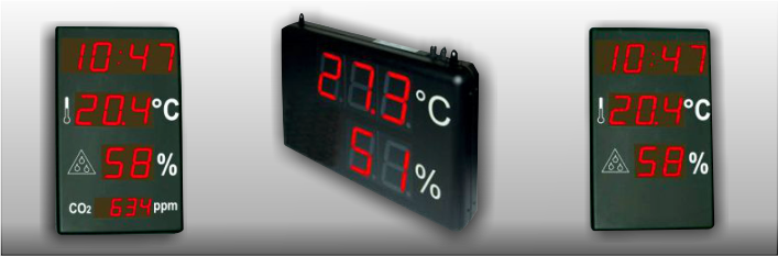 Aun mas completos, con información de humedad relativa, nivel de CO2, días sin accidentes y en diferentes colores de led