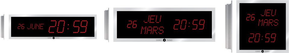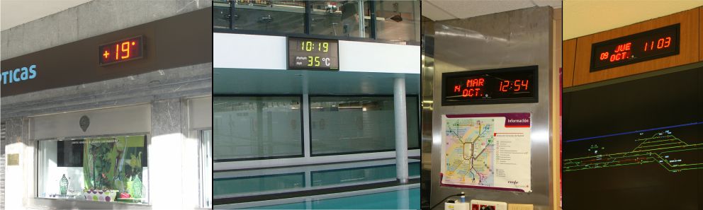 Todos estos relojes digitales ofrecen una lectura rapida e indiscutible de la hora, su funcionamiento es totalmente silencioso, su lectura es muy cómoda en lugares oscuros o muy luminosos, su cara delantera es anti-rayaduras y anti-reflejos, no necesita mantenimiento y su garantía es de 5 años. Características: Color de visualización programable entre: rojo, àmbar o verde. Caja extraplana de aluminio anodizado. Angulo de lectura de leds 160º. Reserva de memoria con batería de litio para 10 años. Reglaje manual de la hora por botonera situada en la parte posterior de la caja. Temperatura de funcionamiento de -20º a +70º. Cambio de hora legal automático.